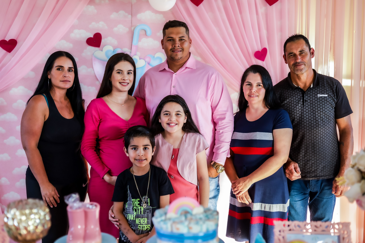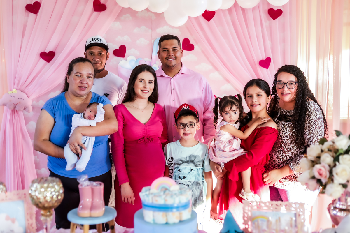 O evento contou com a presença de amigos e familiares. Foi uma festa linda e animada, preparada com muito amor e carinho a espera da pequena Alana.